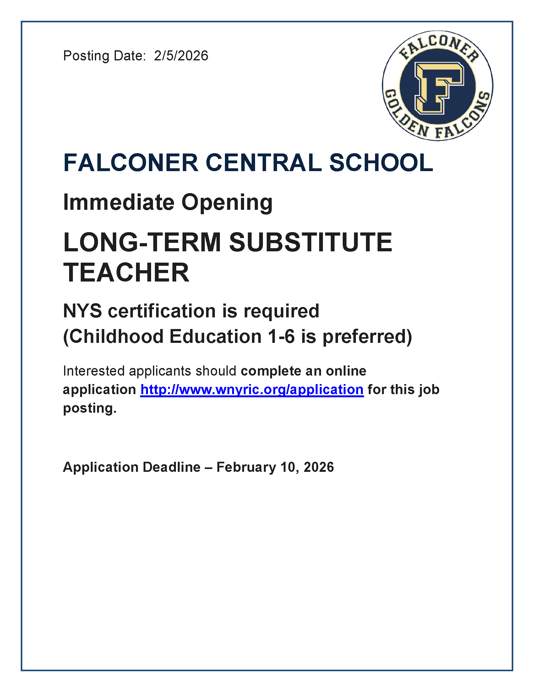 Show your Falconer Pride! The Falconer Pride apparel store is open online until February 1st at 11:59 p.m. Don't miss out!Click here to visit the online store and place your order